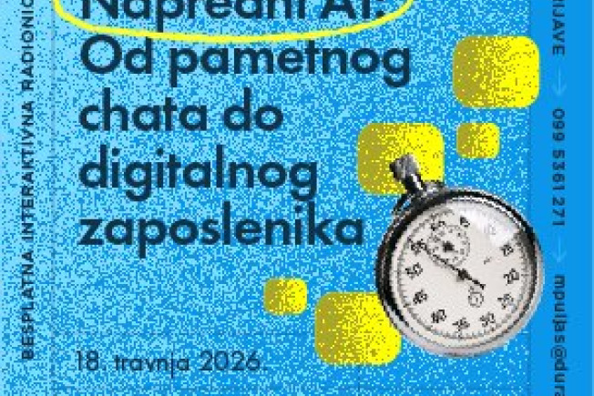 Nakon iznimno posjećenih uvodnih radionice koje su sudionicima otvorila vrata svijetu generativne umjetne inteligencije, DURA-a kao korak više, za vas organizira radionicu „Napredni AI – Od pametnog chata do digitalnog zaposlenika“. Radionica će se održati u okviru Startup akademije u subotu 18. travnja 2026. g. u prostorijama DURA-e, na adresi Branitelja Dubrovnika 15, 20 000 Dubrovnik, s početkom u 9.00 sati.
