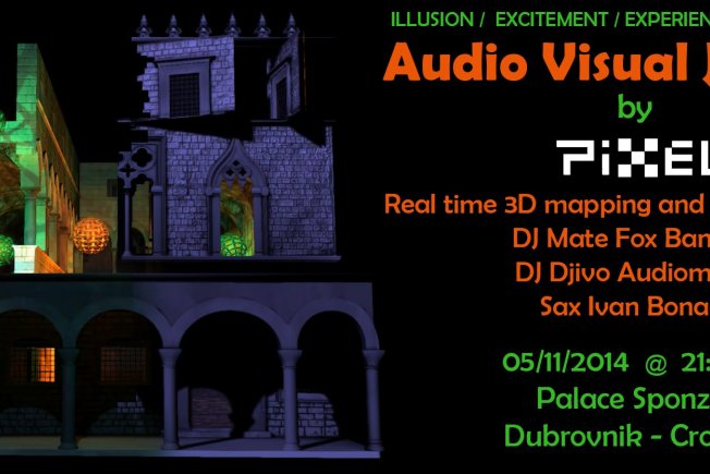 Što ćemo vidjeti 05.11. ispred palače Sponza, rekao nam je Tomo Nadramija iz Pixela: „Program započinjemo sa „klasičnom“ 3D mapping projekcijom, nakon koje slijedi audio-vizualni performans, odnosno 3D mapping projekcije u interakciji sa glazbom za koju je zadužen naš dvojac DJ Mate fox i Djivo Audiometric, te saxofonist Ivan Bonačić.