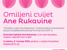 Socijaldemokratski forum žena SDP-a u subotu, 9. travnja 2022. u više od 90 gradova i općina, na više od 100 lokacija, organizira tradicionalnu humanitarnu akciju „Omiljeni cvijet Ane Rukavine“. Prodajom tulipana, omiljena Anina cvijeta, prikupljat će novčane donacije za Zakladu Ana Rukavina.