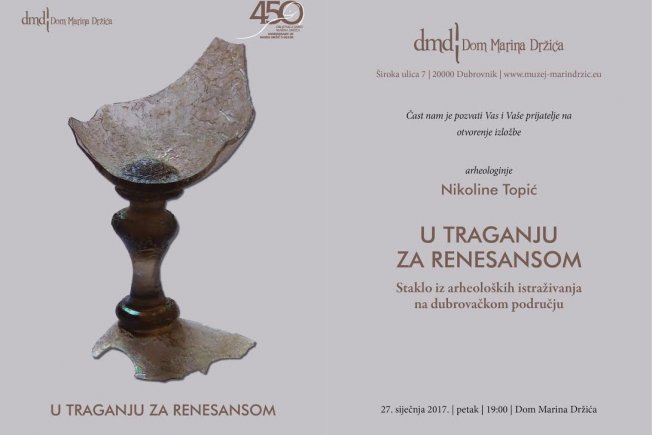 Izložba predstavlja predmete od stakla koji su pronađeni tijekom arheoloških iskapanja na različitim lokalitetima u povijesnoj jezgri Dubrovnika i dubrovačkog područja. Poseban naglasak stavljen je na predmete iz razdoblja renesanse (15. i 16. stoljeće) što je vrijeme tzv. "zlatnog doba Dubrovnika" i ekonomskog, trgovačkog, znanstvenog, umjetničkog i svakog drugog procvata. To je ujedno doba Marina Držića koje je Domu Marina Držića najzanimljivije. Koncepcijski, nakon što je Dom Marina Držića postavio temelje bavljenju Držićem kao temom (likovnom, književnom, znanstvenom – izložbama, promocijama, radionicama, predstavljanjima knjiga itd.), napravio je korak dalje u promišljanju Doma Marina Držića kao muzeja književnosti (dubrovačka književnost kao izvor nacionalne književnosti i hrvatskog standardnog jezika) i nastavio s bavljenjem kontekstom Držićeva vremena, njegovih suvremenika, kulture življenja i slično. Ova izložba predstavlja upravo jedan takav kulturološki doprinos poznavanju Držićeva vremena jer nas, kroz predmete od stakla, upoznaje s obrtničkim prilikama, trgovačkim vezama i kulturi svakodnevice – življenja u kući u Dubrovniku.