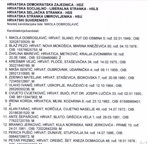 Lista za Županijsku skupštinu je sedam.
