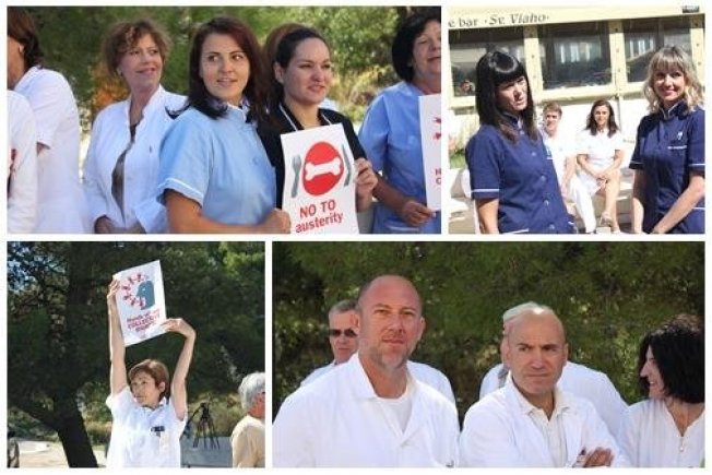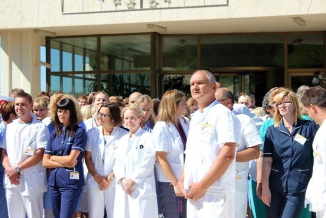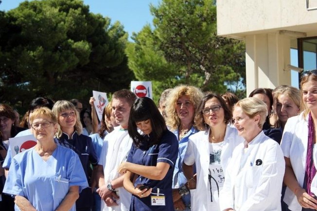 Nastavlja se štrajk bolničkih liječnika i medicinskih sestara. Sindikati najavljuju da će trajati sve do ispunjavanja zahtjeva, odnosno potpisivanja novog kolektivnog ugovora. Nezadovoljni podacima Ministarstva zdravlja i bolničkih uprava o odazivu, sindikati liječnika i medicinskih sestara organizirali su danas akciju Pet do dvanaest. Liječnici i medicinske sestre Opće bolnice Dubrovnik pokazali su tako ministru Ostojiću koliko ih ima i koliko su složni u svojim zahtjevima.