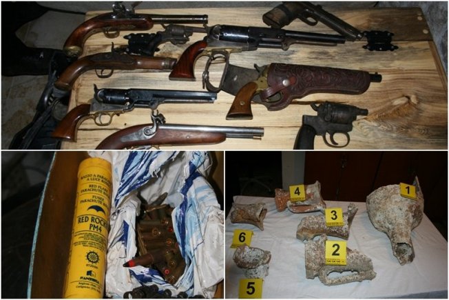 Pretragom je pronađena veća količina oružja i streljiva odnosno automatska vojna puška, vojni karabin, kundak lovačke puške, 3 kubure, 2 pištolja, 4 revolvera, 179 komada raznog streljiva, signalna brodska raketa, redenik za automatsku pušku, 6 pancirno zapaljivih streljiva vojnog porijekla i 2 ručne bombe. Osim navedenog, pretragom su pronađeni i ostaci amfora, zaštićenog kulturnog dobra.