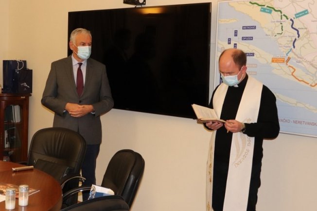 Katedralni župnik don Marin Lučić blagoslovio je danas dužnosnike, djelatnike i prostore Dubrovačko-neretvanske županije.
