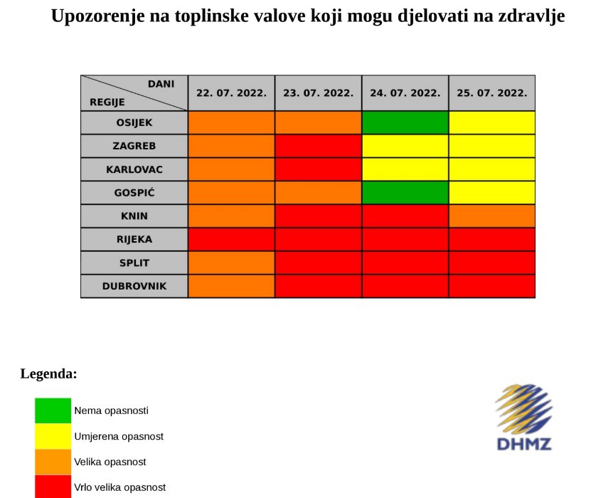 Za vrijeme trajanja velikih vrućina treba se pridržavati savjeta zdravstvenih ustanova.