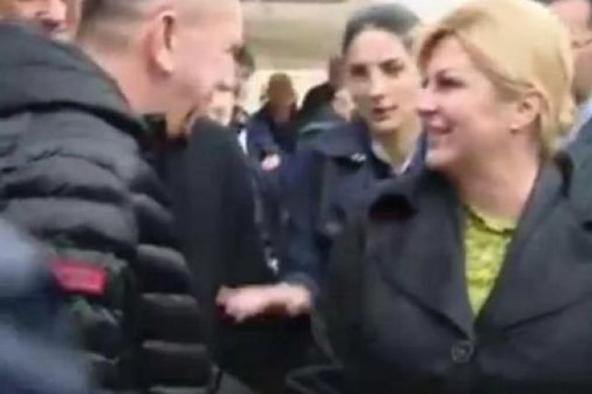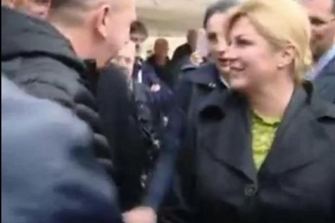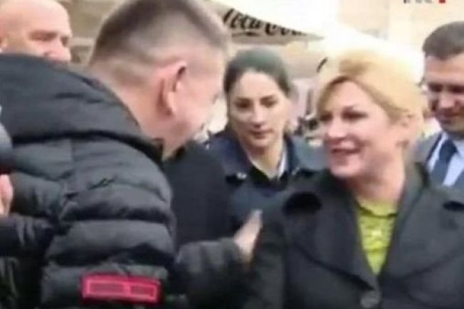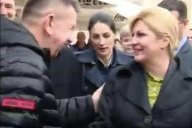 Kolinda Grabar-Kitarović boravi u Zadru. Prilikom pozdravljanja građanin ju je potapšao po ramenu, a tjelohraniteljici se to nije nimalo svidjelo, smatrala je to rizičnom akcijom građanina pa je reagirala, a što se sve lijepo vidi na snimci HTV-a.