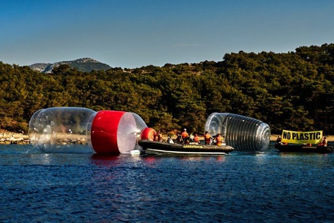 Aktivisti Greenpeacea u subotu su na Mljetu izložili desetmetarske rekvizite kako bi zorno prikazali gdje najčešće završava plastika za jednokratnu upotrebu nakon što se poslije kratke upotrebe nađe u smeću.