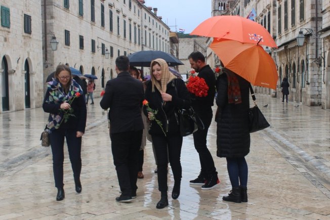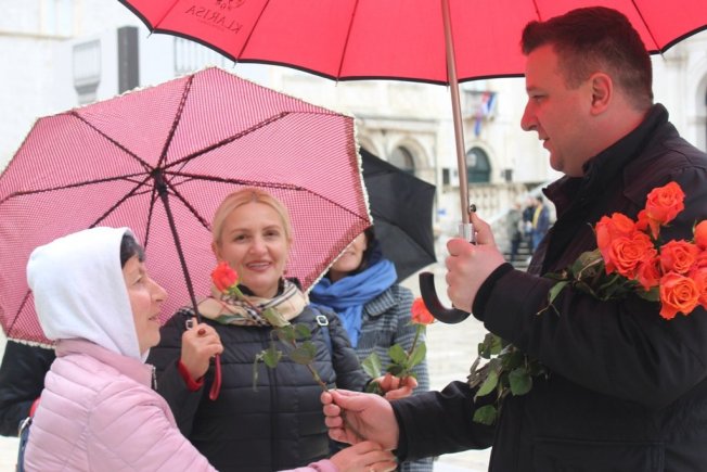 NI KIŠA IH NIJE SPRIJEČILA Dubrovačko-neretvanski HNS-ovci ženama dijelili ruže