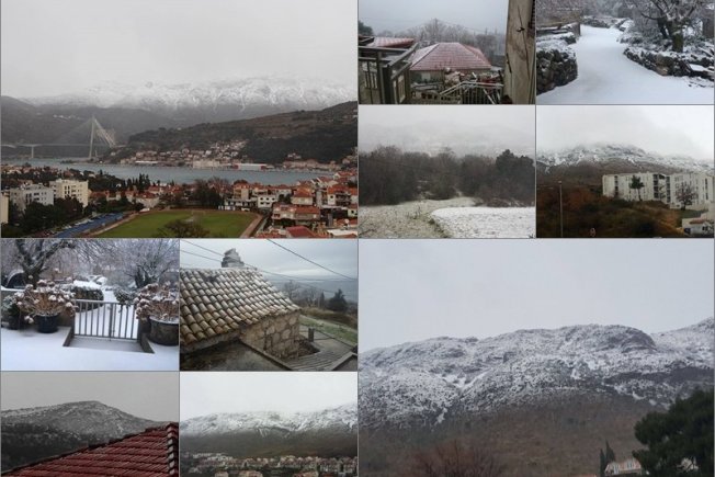 Tako je preko noći snijeg napadao u Konavlima (Konavoska brda). Građani javljaju kako je zabijelilo i u Župi dubrovačkoj, Osojniku i brdima oko Mokošice. Zabijelila su i sela u Dubrovačkom primorju prema granici, dok u bližima Gradu pada kiša s pahuljama. Kako izgledaju navedena područja pod snijegom, pogledajte na fotografijama.