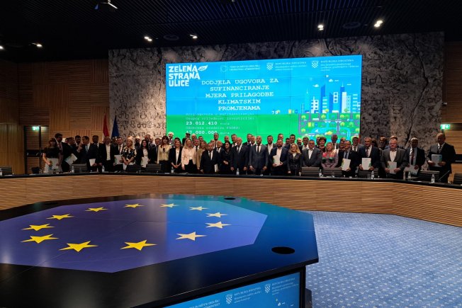 U Nacionalnoj i sveučilišnoj knjižnici u Zagrebu upriličena je svečana dodjela ugovora o sufinanciranju projekata prilagodbe klimatskim promjenama u svrhu jačanja otpornosti urbanih sredina.