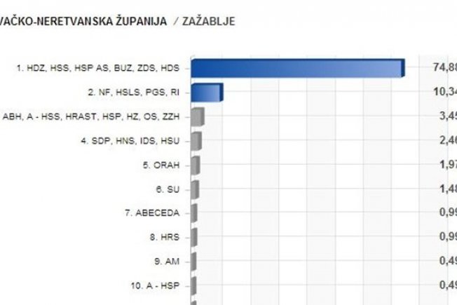 Primorje u Županiji 'šije' jedino općina Zažablje gdje su se glasači s čak 74,88 posto glasova izjasnili za HDZ-ovu koaliciju, dok je SDP-ova osigurala sramotih 10,34 posto.