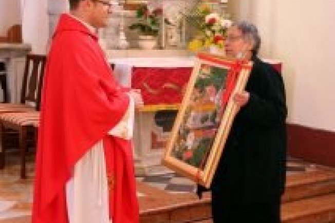 Nakon tradicionalne procesije oko Janjine i po povratku u crkvu najstarija članica mješovitog zbora učiteljica Marija ud. Jasprica je za uspomenu i dugo sjećanje predvoditelju slavlja Karatoviću darovala sliku crkve sv. Vlaha, rad mještanke Marije Gušalović.