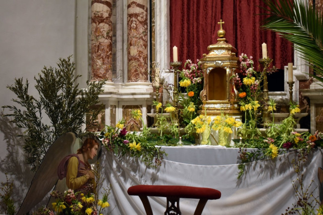 Misa večere Gospodnje završena je prijenosom Presvetog Oltarskog Sakramenta u procesiji na posebno uređen oltar koji simbolizira Kristov grob, a gdje će vjernici imati priliku za molitvu.