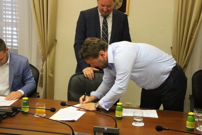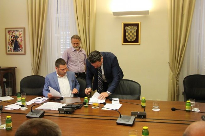 Zamjenik župana Davorko Obuljen i ministar graditeljstva i prostornog uređenja Lovro Kuščević sudjelovali su na svečanom potpisivanju ugovora vrijednih 2,5 milijuna kuna s načelnicima općina i gradonačelnicima s područja Dubrovačko-neretvanske županije.