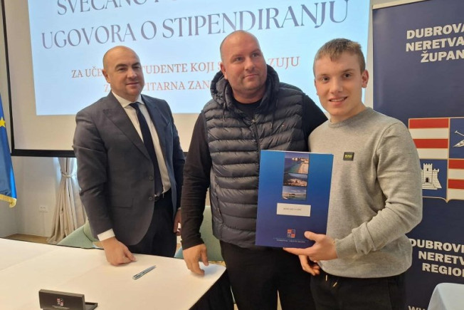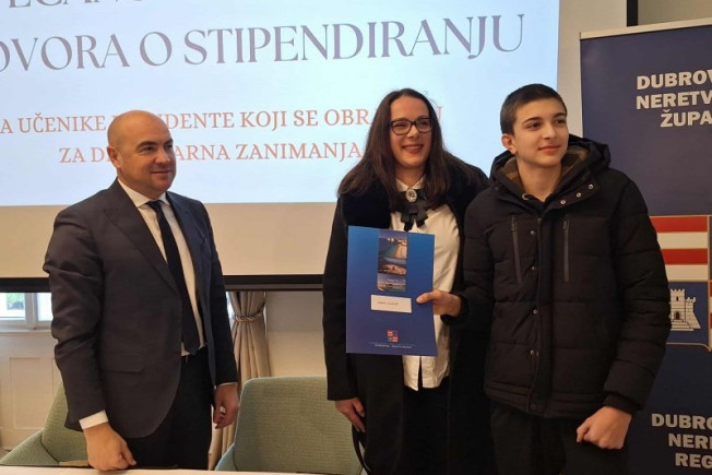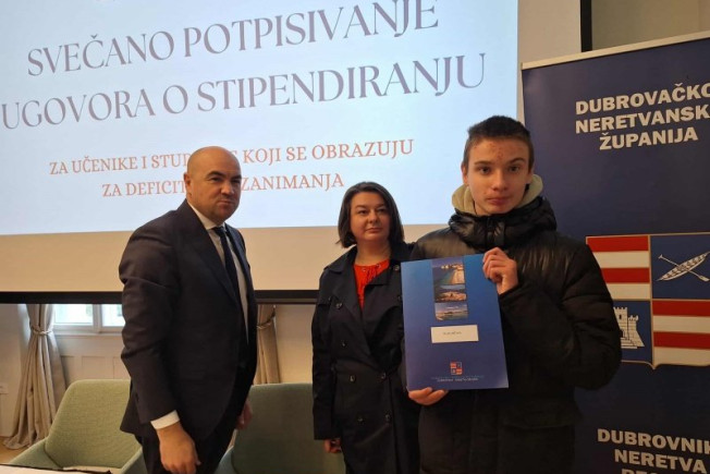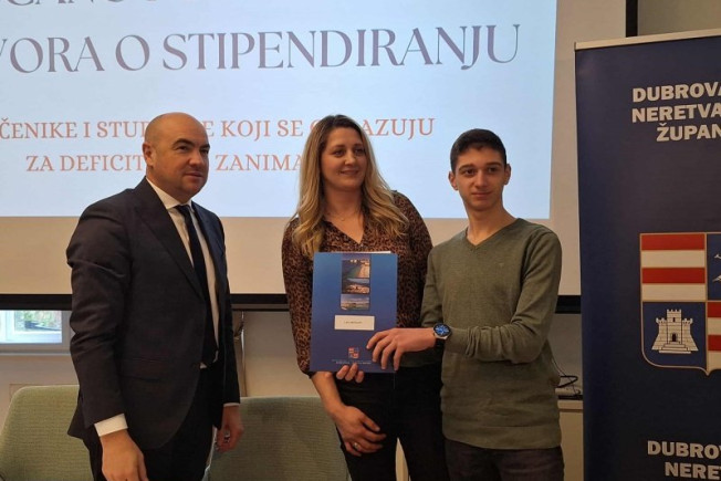 Dubrovačko-neretvanski župan Blaž Pezo dodijelio je danas ugovore o stipendijama učenicima i studentima koji se obrazuju za deficitarna zanimanja, kao i darovitim učenicima i studentima.